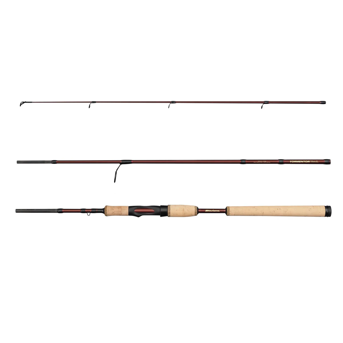 The TORMENTOR rod series are designed to be affordable, reliable and widely applicable. These spinning rods can be used in many different circumstances for all sorts of lures and techniques. This travel series has blanks which are devided in 3 or 4 sections, making them very convenient in transport – while maintaining a good rod action which feels just like you are using a regular 2 section rod. Finished with classy dark red blank colour and cork handle grips.
