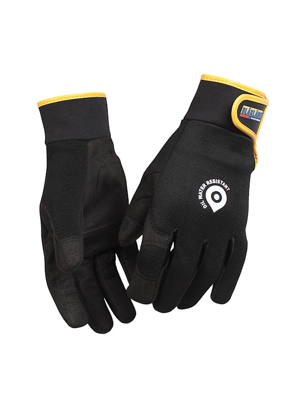 Syntetisk läderhandske med förstärkt handflata och kardborreband.