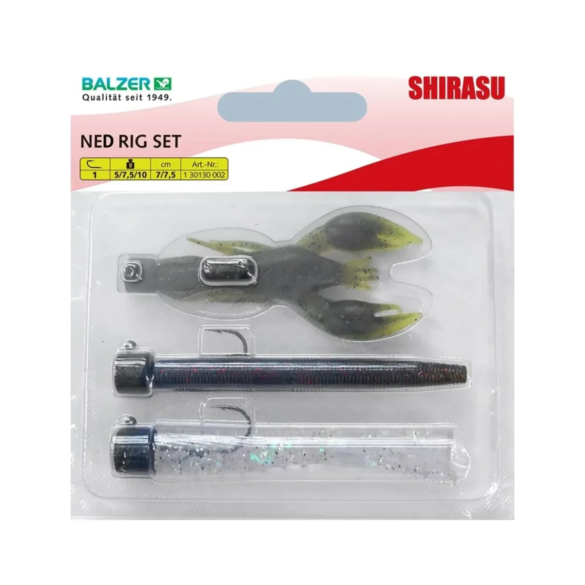 Balzer Ned Rig Set är ett komplett set med nedrig-beten. Setet innehåller tre färdiga 5-7,5cm beten på 5-10g, perfekta för försiktigt presentation i både färskt och bräckt vatten.
