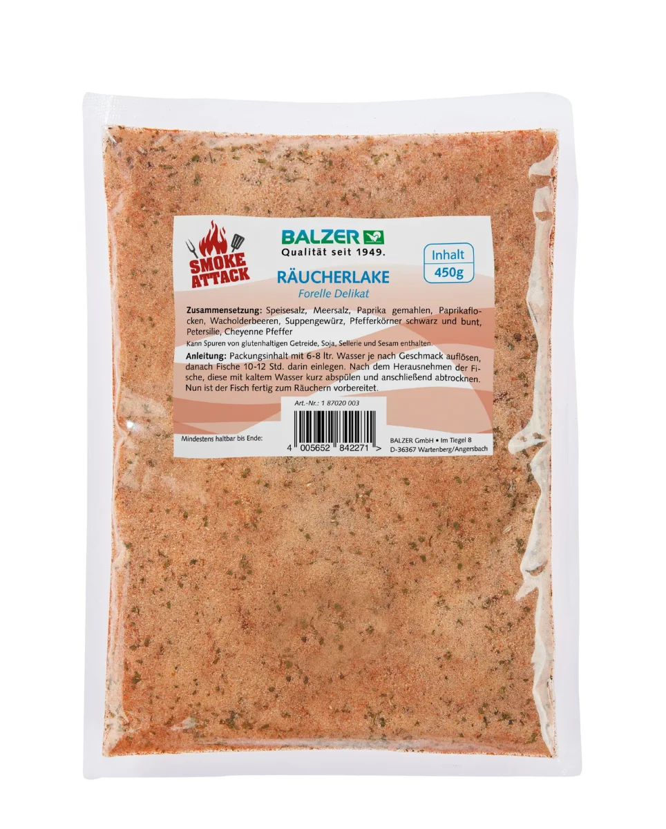 Balzer Special Brine är en salt/kryddblandning för att grava din fisk i innan tillagning. Alla produkter är 100 % naturliga, utan konserveringsmedel eller smakförstärkare – endast naturliga aromer och kryddor används.