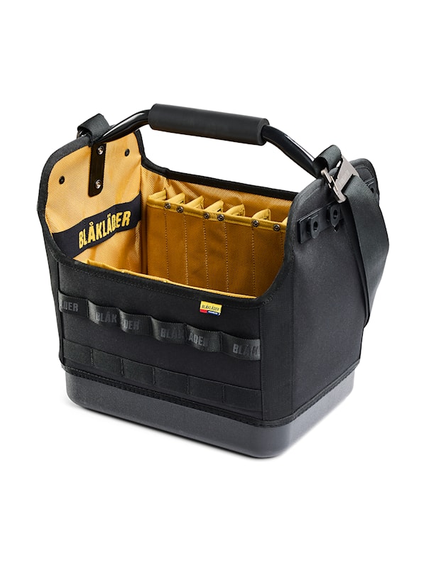En rejäl verktygsväska som håller ordning på verktygen. Bär den i handtaget eller över axeln. Den öppna, stabila konstruktionen ger snabb överblick och enkel åtkomst till allt du behöver.