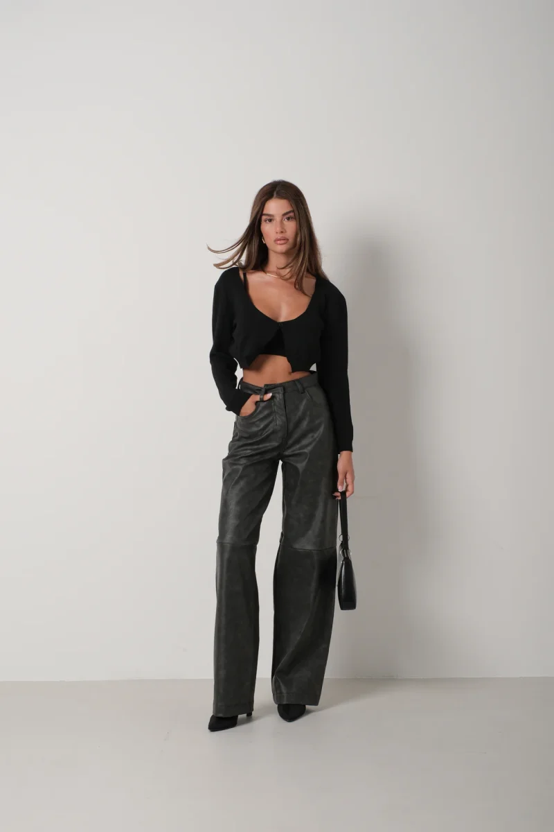Lyft din outfit med vår croppade kofta med knapp – ett elegant och mångsidigt plagg som kombinerar komfort och stil. Under den mjuka koftan med knappstängning medföljer en matchande svart topp, vilket gör detta till ett komplett set perfekt för både vardag och kväll.