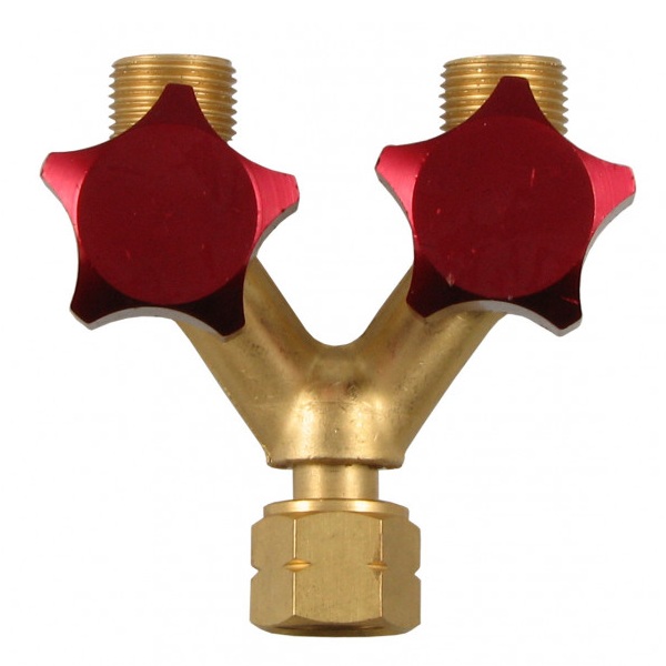 Dubbeluttag med vänstergängad 3/8″ anslutning (röd) för t.e.x Acetylen eller Propan.