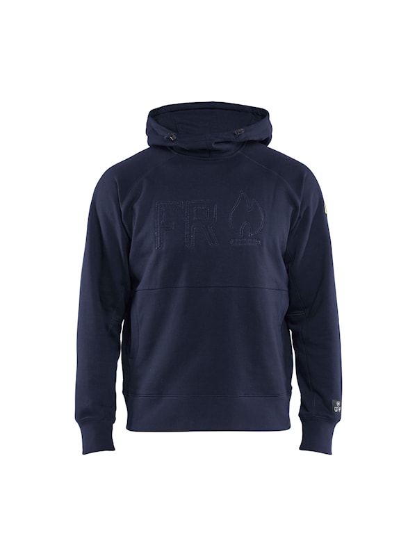 Luvtröjan har brodyr som tydligt visar att den är flamskyddad. Dold innerficka för telefon.