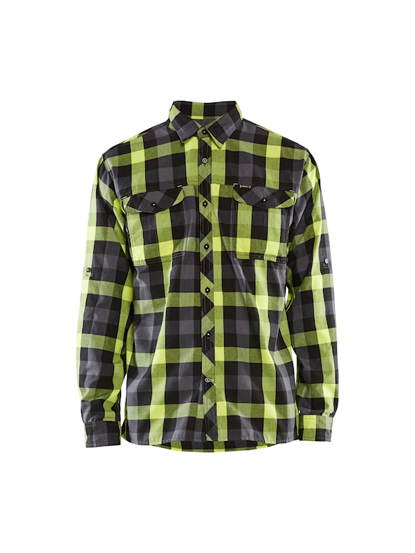 Mjuk och snygg skjorta i flanell med rymlig passform. Skjortan har rutmönster i svart/varselgul, är borstad på insidan och har två bröstfickor med lock med öppning för penna till vänster. Bärs med fördel både privat och på jobbet.