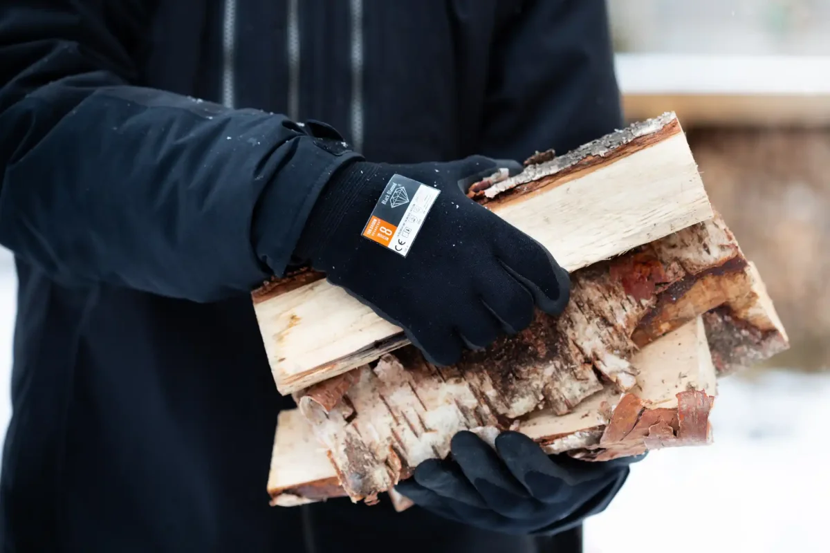 Dessutom ger den inkapslade luftstrukturen i beläggningen både stötdämpning och förbättrad kontroll vid hantering av hårda material. Samtidigt bidrar det varma akrylflanellfodret till effektivt skydd mot kyla. Därmed passar handsken utmärkt för längre arbetspass i kyliga miljöer.