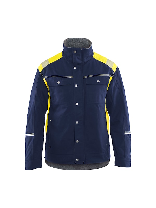 Varm vinterjacka med smarta varseldetaljer för ökad synbarhet. Jackan har reflexdetaljer på bål, ärmar och axlar, bröstfickor med lock och knappknäppning samt framfickor med fleecefoder.