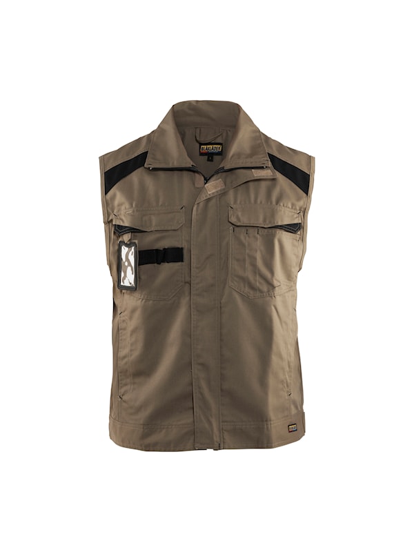En slitstark väst med detaljer och tränsar i kontrastfärg. Tvådelad pennficka försedd med ripsband för extra verktyg. Bälgveck i rygg för ökad rörlighet. Reglerbar nederkant.