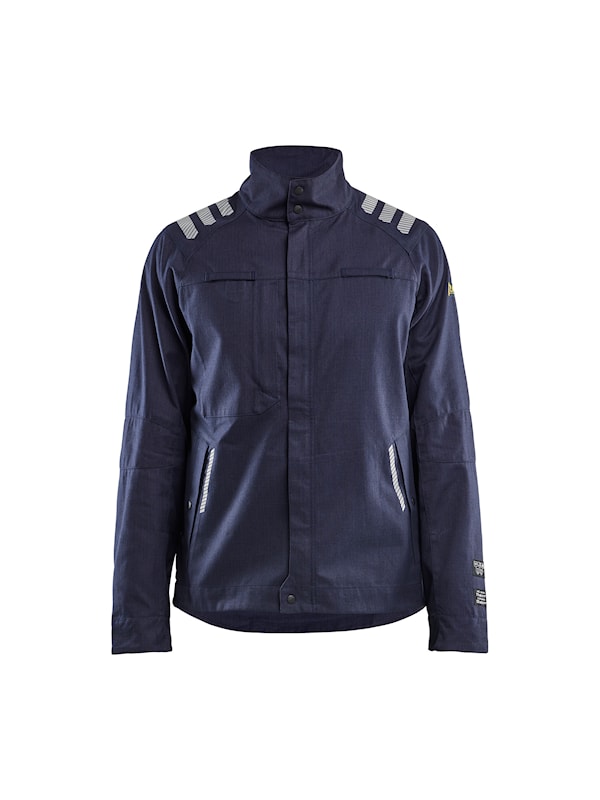 Metallfri industrijacka som är tillverkad i en mjuk, följsam och komfortabel kvalitet med hög slitstyrka som är smuts- och vattenavvisande. Dold bröstficka med blixtlås, två framfickor med lock samt hällor vid ok för mikrofon, syremätare eller annan teknisk utrustning.