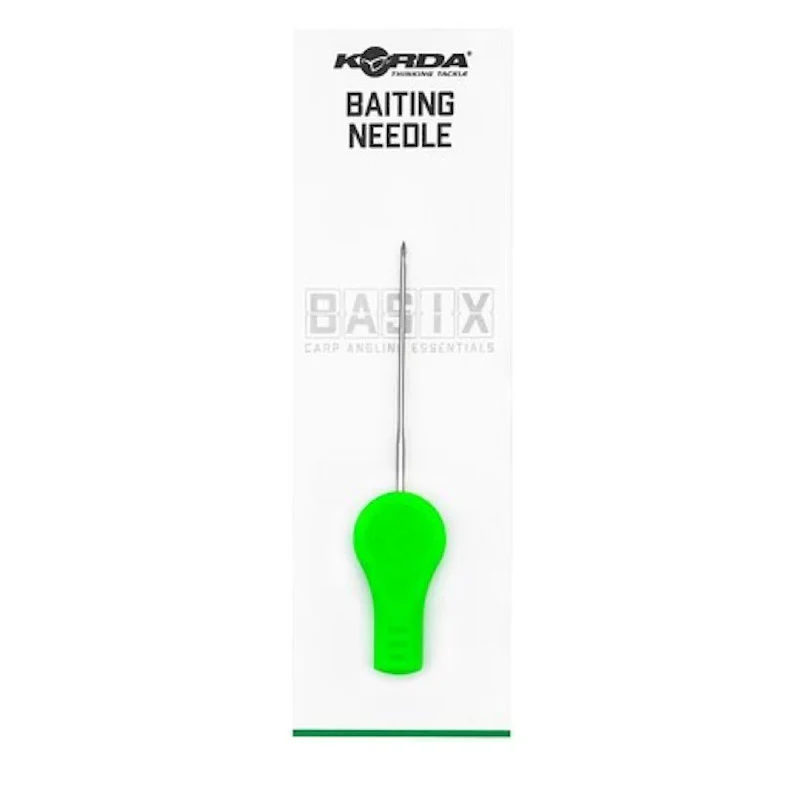 Basix Baiting Needle kan användas med de flesta beten eftersom den är vass och stark, vilket gör att den kan tränga igenom hårdare beten utan att de spricker. Kroken i änden är utformad för att hålla håret på plats medan betet träds på, bort från nålen, utan risk för att flätade material fransar sig eller separerar, vilket annars kan göra det svårt att sätta på ett hair stop.
