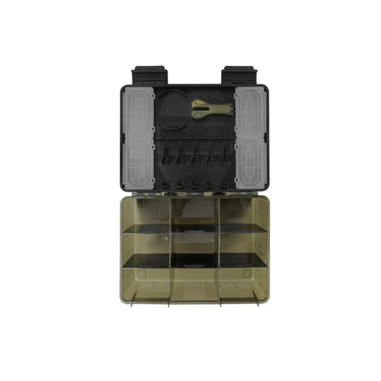 BLOX är ett nytt förvaringssystem för tackel, framtaget med allroundfiskaren i åtanke. Designad för att rymma allt du behöver på ett organiserat och lättillgängligt sätt. Storleken är noggrant anpassad för att rymma viktiga tillbehör som linspolar, krokpåsar och andra tillbehör. Du kan använda den dedikerade BITS BLOX för att få praktiska fackindelningar, och dessutom finns plats i locket för smådetaljer. Dina betesverktyg och saxar klickas enkelt på plats, och huvudlådan kan anpassas med avdelare efter behov. RIG BLOX får också plats, så att färdiga tackel hålls torra och skyddade. En låda som klarar allt!