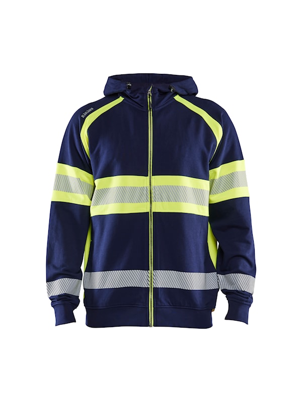 Mjuk och bekväm luvtröja i varsel och med en härlig bomullskvalitet. Har skurna transferreflexer för extra bra stretchegenskaper och andningsförmåga. Fickor på sidorna, hög krage, helzip framtill och mudd i nederkant samt ärmavslut för högre komfort.