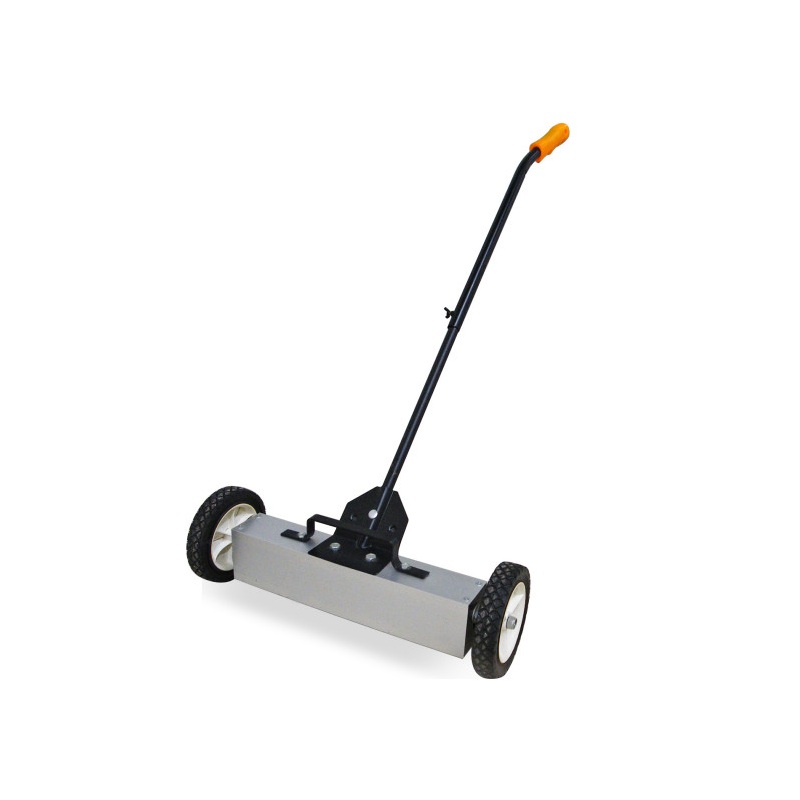 För det första erbjuder spånuppsamlaren en uppsamlingsbredd på 460 mm, vilket gör att stora ytor kan rengöras snabbt och effektivt. Den starka magneten lyfter metallföremål med hög precision, även mindre delar som annars är svåra att upptäcka.