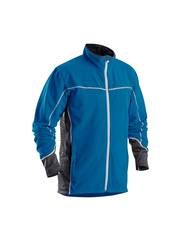 Lätt jacka eller som ett mjukt och varmt andra lager. Denna fleece har stretchmaterial i sidan och ärmavslut för bättre passform. Blåkläder-tryck på höger sida och två innerfickor för mobiltelefon och andra tillbehör.