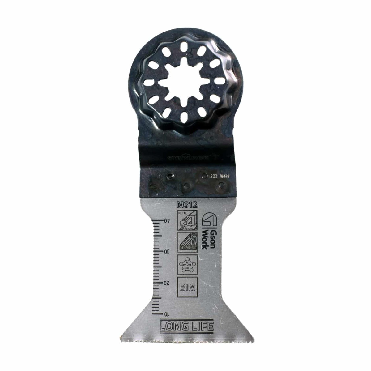Multisågblad i Bi-metall med vågig universaltandning. Brett användningsområde för plåt upp till 2 mm, aluminiumprofiler, kopparrör, trä, gipsskivor och plaster. Mellanbred insvängd form för optimal avverkningshastighet och bra spåntransport. Starlock Multiblade är utrustade med Starlock-teknologi, känd för sin höga kvalitet och prestanda. Dess skär är speciellt utformade för att skära effektivt genom material som trä,metall och plast.