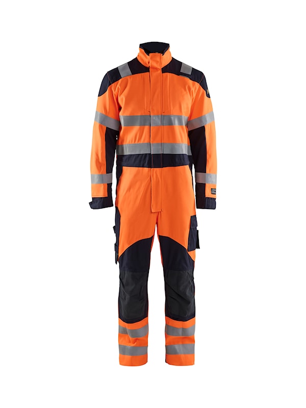 En overall i inherent material, vilket innebär att flamskyddet är inbyggt i fiberns struktur. Den är mjuk, följsam och knäna är förstärkta med ett material av CORDURA®/Kevlar®/Protal®.