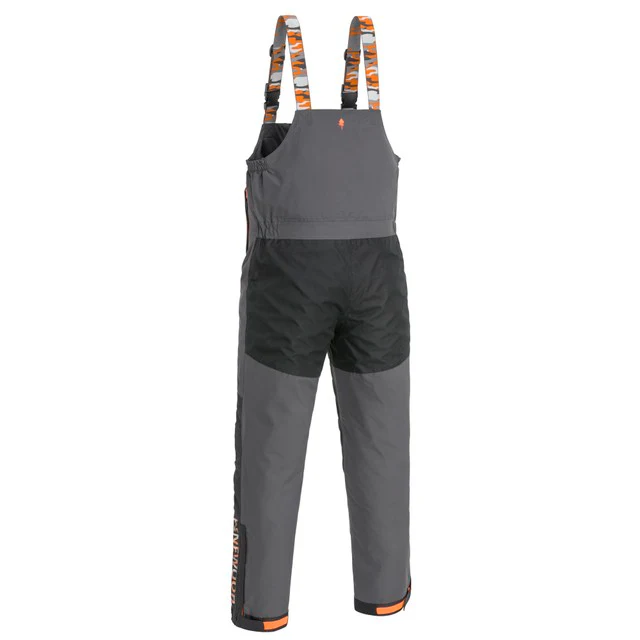 Byxorna är i en högre modell med reglerbara och ej avtagbara hängslen. Har tvåvägsdragkedja, handvärmarfickor, samt resår i linningen. Justerbara benslut med kardborre samt dragkedja.
