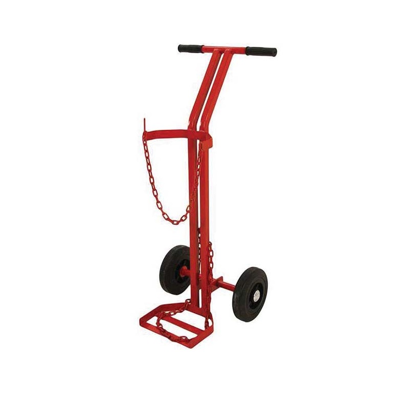 För det första är flaskkärran byggd för att klara frekvent användning i krävande miljöer. Den stadiga ramen håller gasflaskan säkert på plats, vilket minskar risken för tippning under transport.