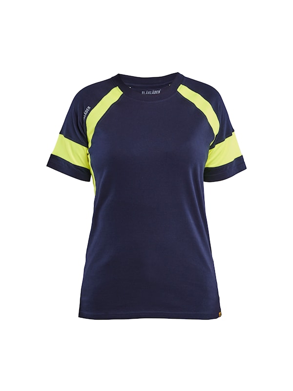 T-shirt i bomull med gula varselpartier för god synbarhet. Passar utmärkt i industrier där man inte får ha reflexer på arbetskläderna.