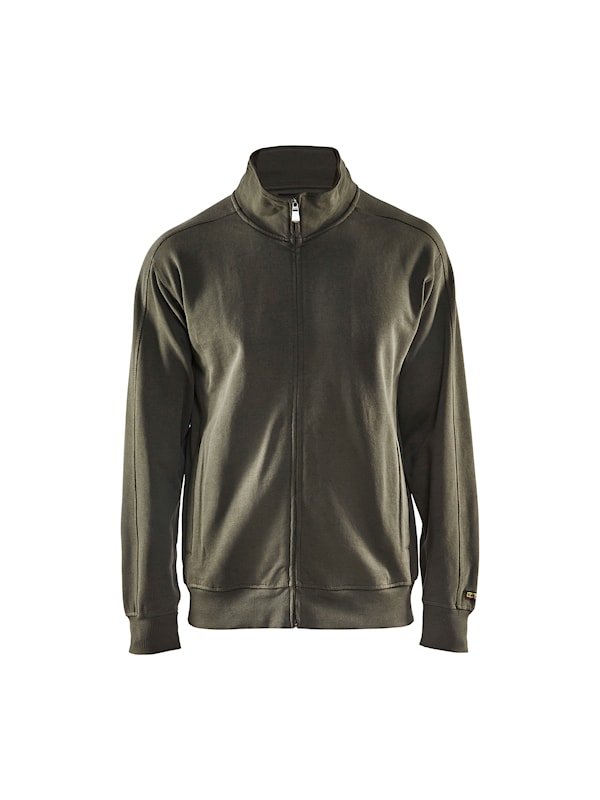 Bekväm sweatshirt med dragkedja i front och två fickor i sidorna. Ribbstickad mudd i ärmar och midja.