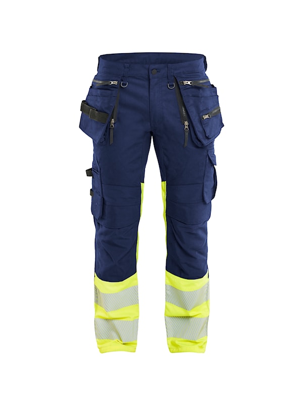 Slitstark varselbyxa i 2-vägsstretch/CORDURA®-denim med avsmalnande ben som är anpassad för arbetsuppgifter med krav på funktion och bra rörlighet. Byxan har stretchpaneler i gren och vad för maximal flexibilitet och god komfort.
