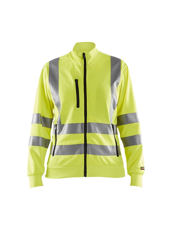 Mjuk och bekväm varseltröja med dampassform och reflexer runt om så att du syns från alla håll. Tröjan har dragkedja, två fickor fram och en bröstficka.