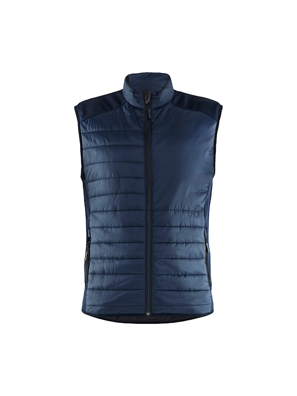 Quiltad väst ur Blåkläders Unitekollektion som är varmfodrad på både bål och rygg. Västens sidor och axelparti är i stickad polyester, vilket bidrar till plaggets utomordentliga rörlighet och komfort. Bra oquiltade profileringsytor.