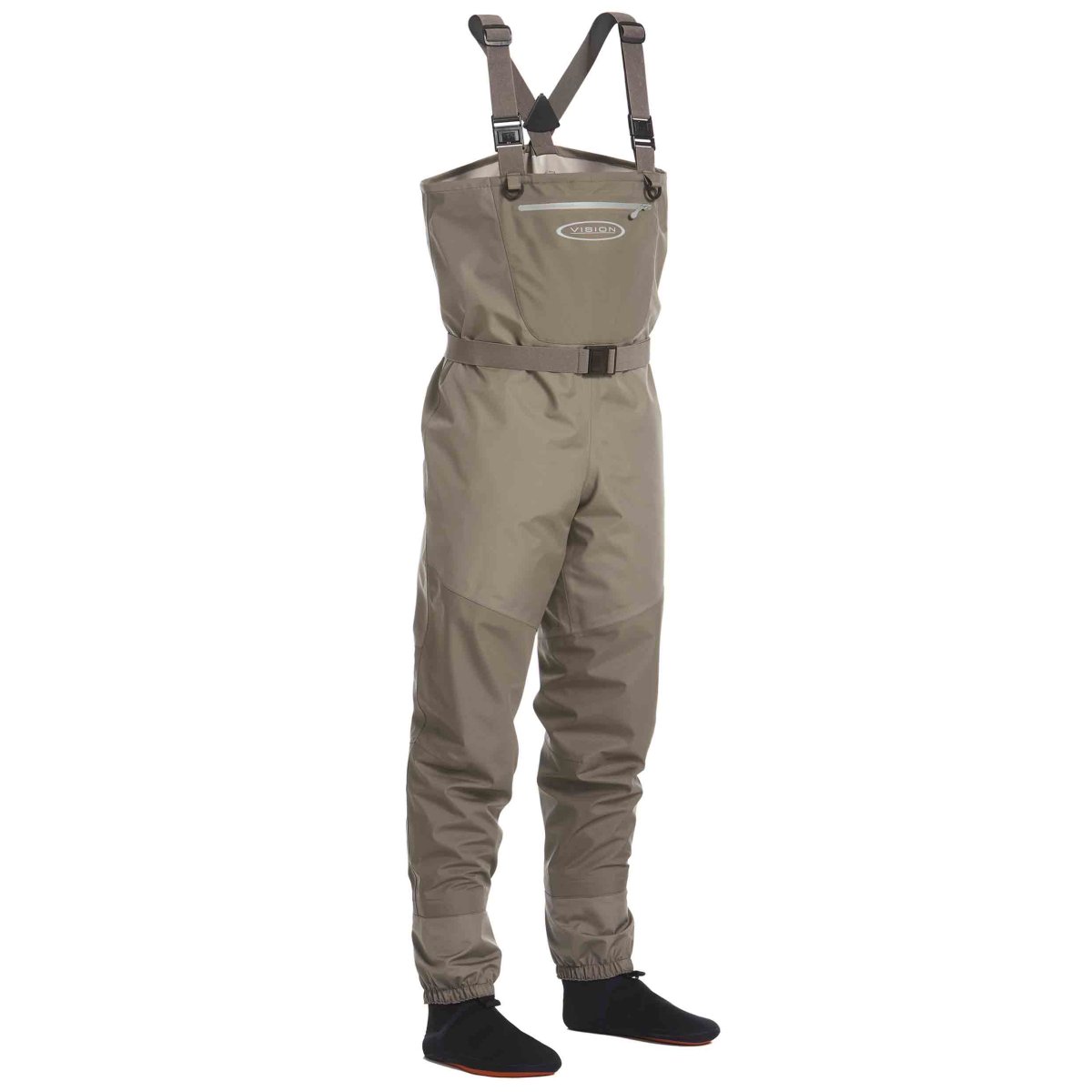 Vision Atom är ett par 3-lagers andasvadare som andas kvalité och har en rad bra detaljer. Vadarna har försedda med neopren sockor med halkskydd, vilket gör att friktionen minstar radikalt och sockorna slits inte lika snabbt.
