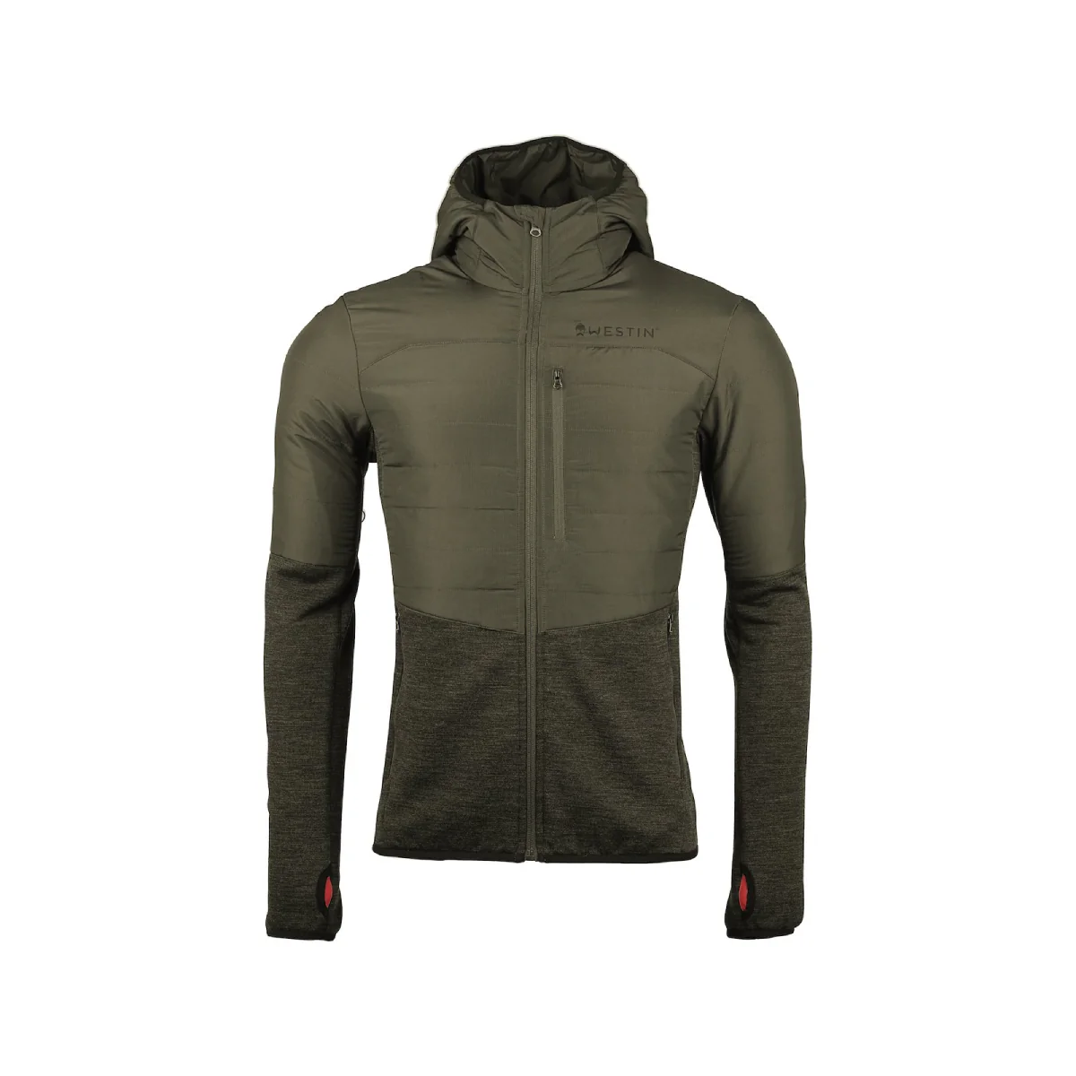 Designad för de svala dagar då du kommer att uppskatta värmen från detta lätta vindbeständiga mellanskikt. Tillverkad av en blandning av merinoull och fleece för en otroligt mjuk känsla, som effektivt transporterar bort fukt från kroppen. De övre delarna har ett ultralätt skal av rip-stop som inte bara är vindbeständigt, utan också vattenavvisande och andas. Den quiltade huvan ger extra värme utan överdriven bulk. Med dragkedja i full längd med hakskydd och två sidofickor med dragkedja för extra säkerhet. Den genomtänkta designen, utan sömmar på axlarna, förbättrar komforten, speciellt när du bär en ryggsäck eller ett flythjälpmedel. Den ultimata hybridjackan för föränderliga dagar på- eller längs med vattnet.