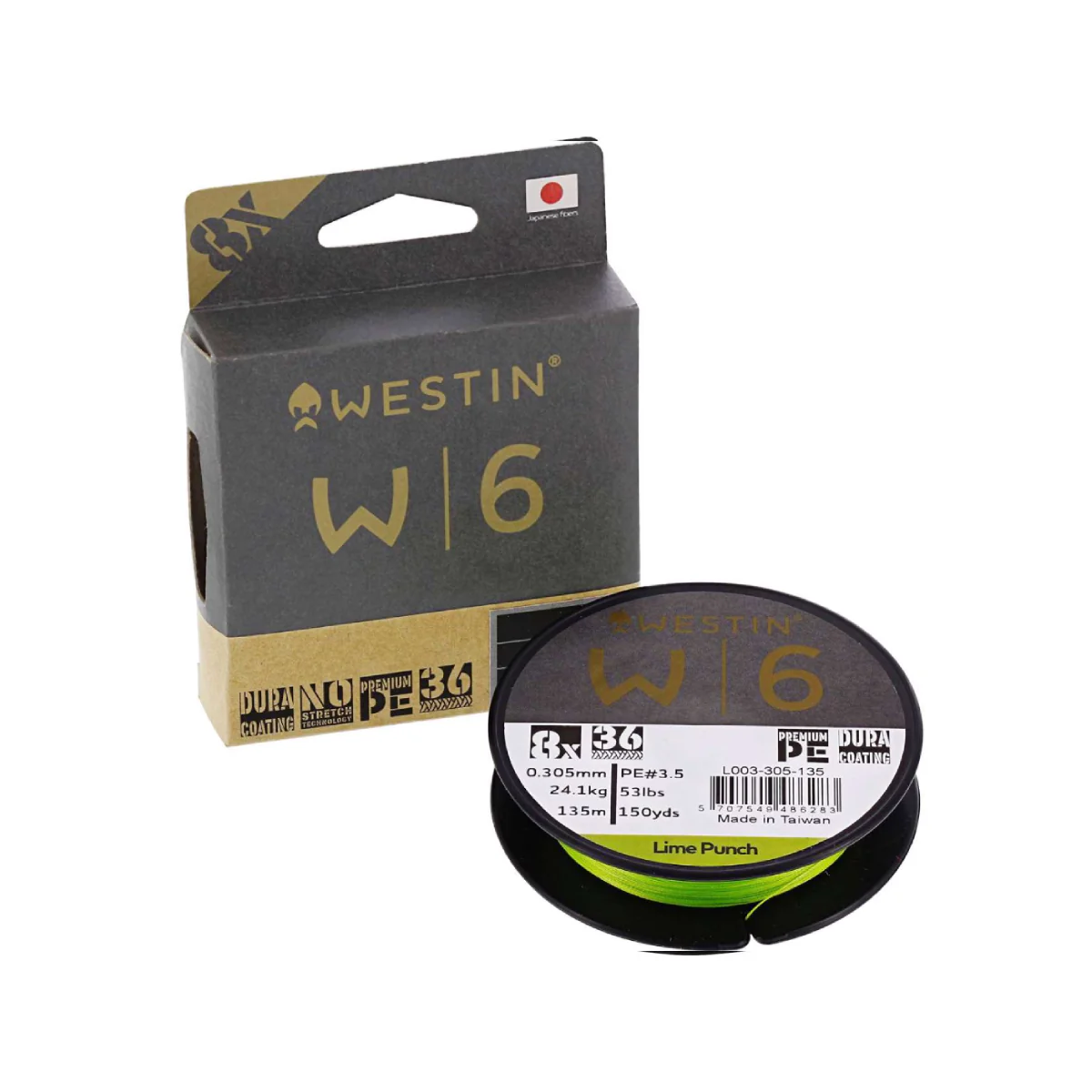 Att uppnå den perfekta kombinationen av olika attribut i en flätad lina är en sorts alkemi som kräver upprepad förfining och testning för att få fram den slutliga produkten. W6 Braid har utvecklats med hjälp av en unik konstruktionsprocess för allround spinnfiske. Westin har utnyttjat japanska UHMPE (Ultra High Molecular Polyethylene) premiumfibrer i konstruktionen av W6 Braid på grund av deras otroliga prestanda och styrka. För att uppnå en högre nötningstålighet och mer styrka är W6 Braid konstruerad genom en speciell vävteknik för denna lina som vi kallar “Advanced High PIC”. Denna 8X (åtta fibrer) flätlina har en 36 PIC konstruktion (flätningar per tum) som ger en starkare lina för sin diameter.